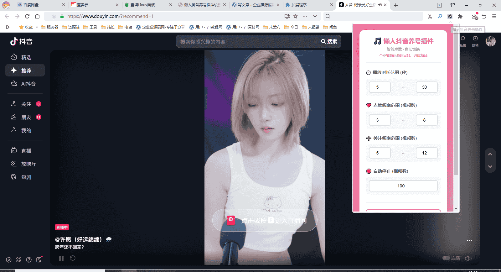 [PHP源码] 懒人抖音自动浏览/点赞/养号源码/自动播放/自动点赞