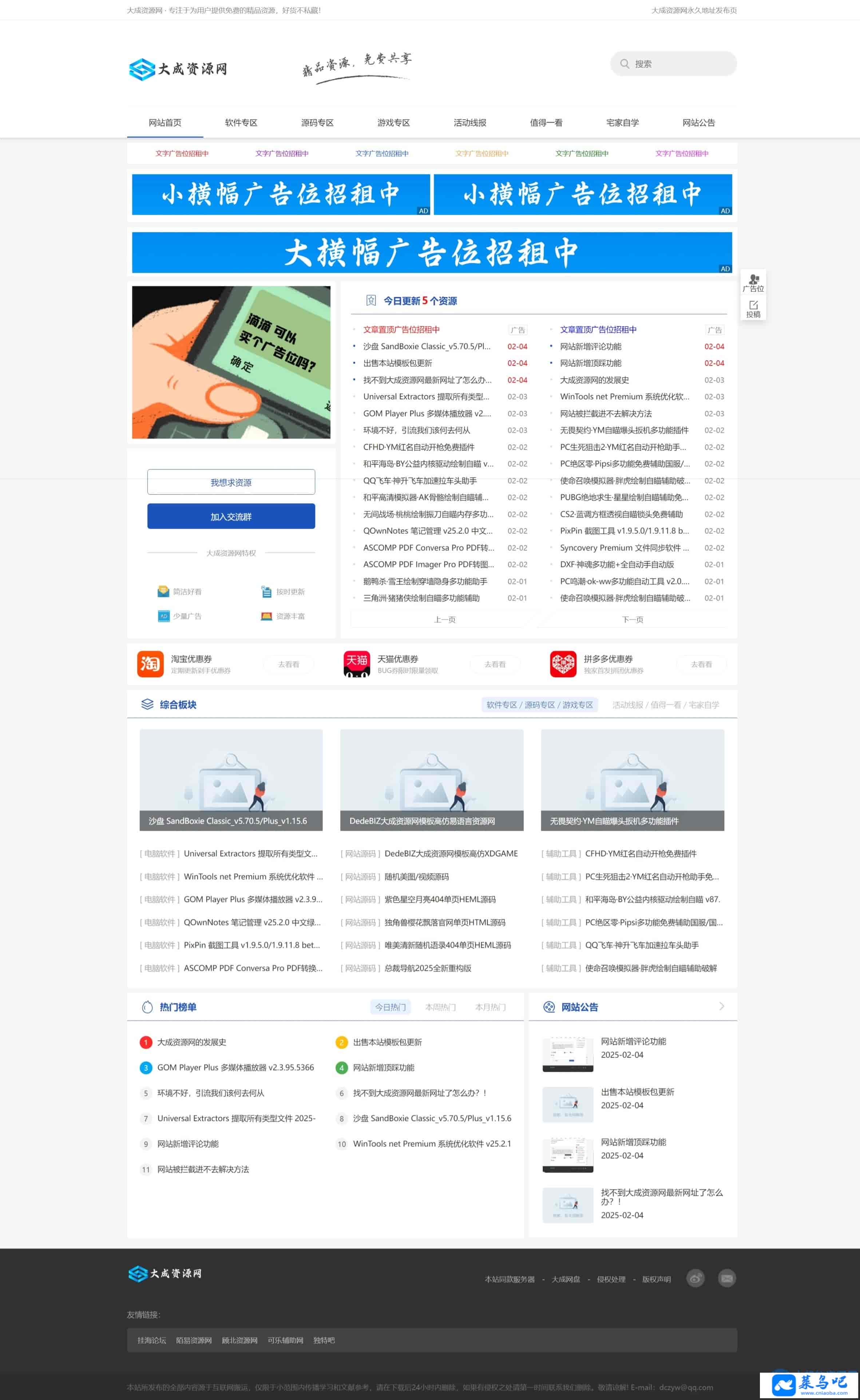 这是一套用DedeCMS搭建的资源网,模板是小刀娱乐网、善恶资源网的同款模板。系统非最新版,也请勿随意升级,会报错!系统部分文件代码有改动。