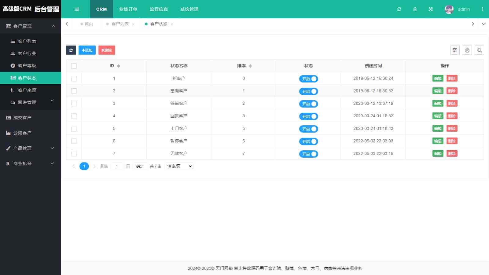 支持批量删除客户,抢客户,客户公海,客户线索,客户来源,客户地区,
