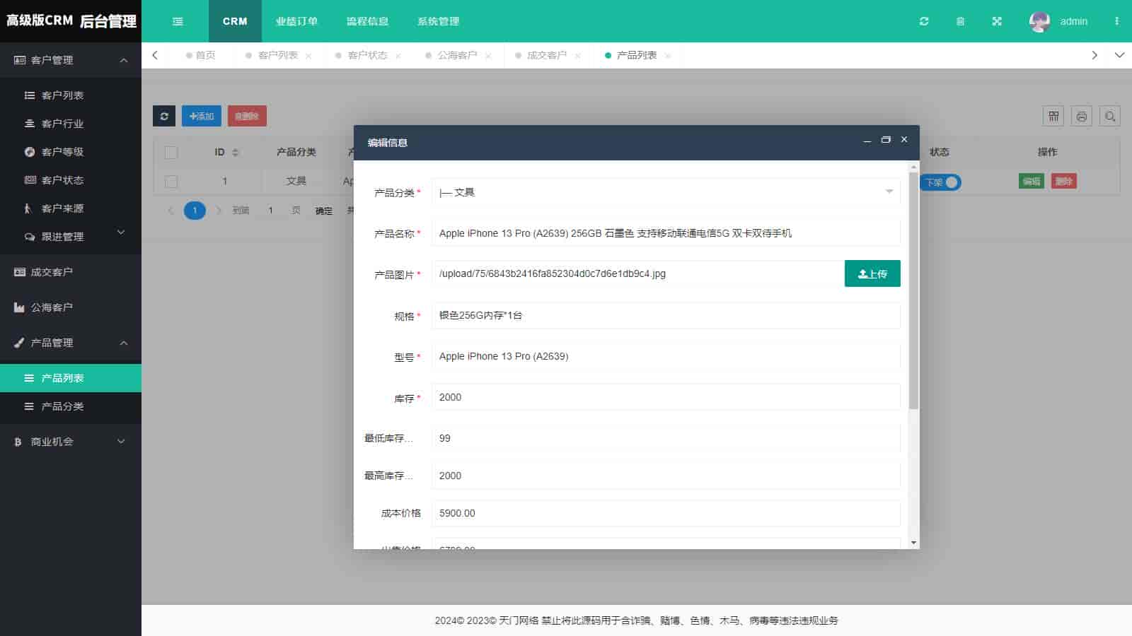 修复跟进记录类型,新增商机功能,新增商品功能,可以关联商品,修复已知bug。