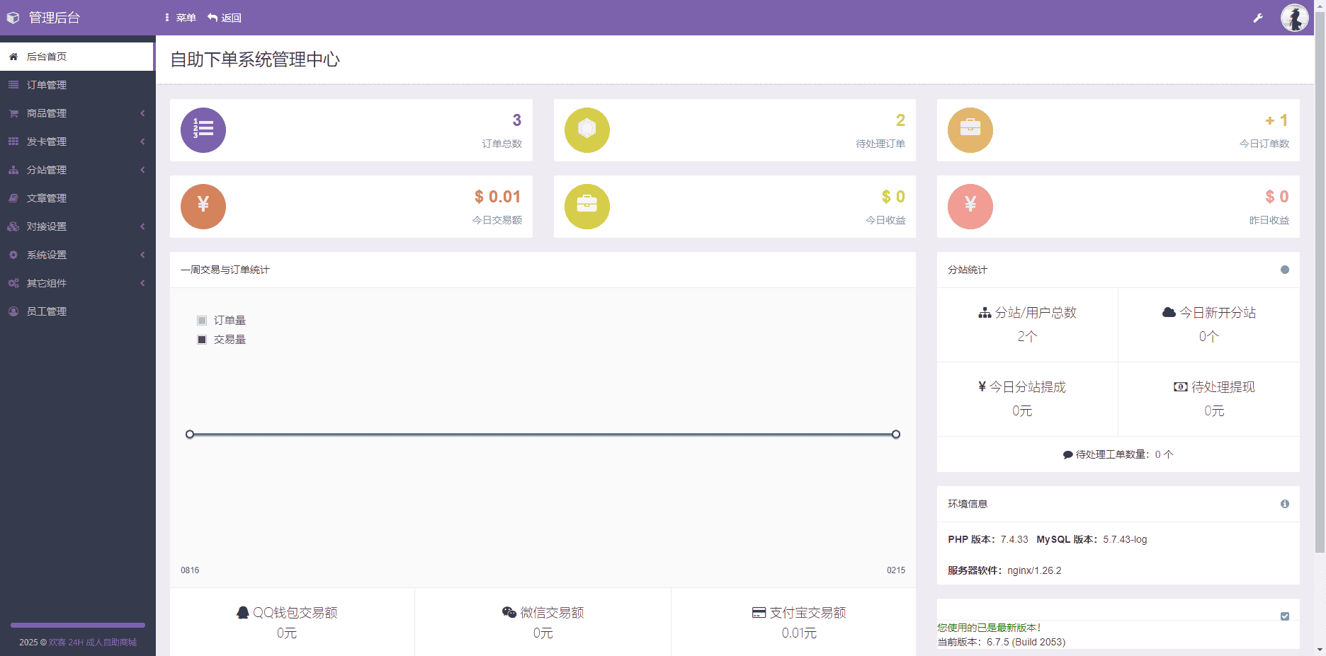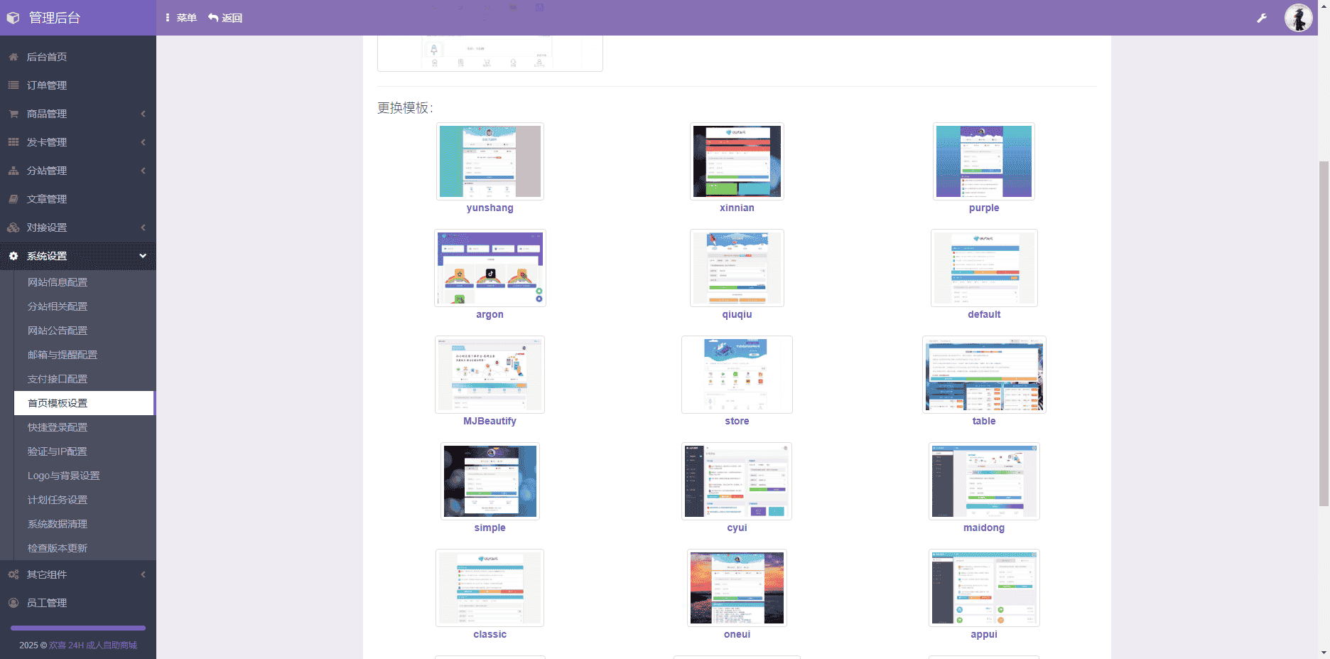 这套源码用的彩虹发卡程序,功能还是挺多的,支持开通分站,下单邮箱提醒,后台有 20 套前台模板,也可以改做其他站点