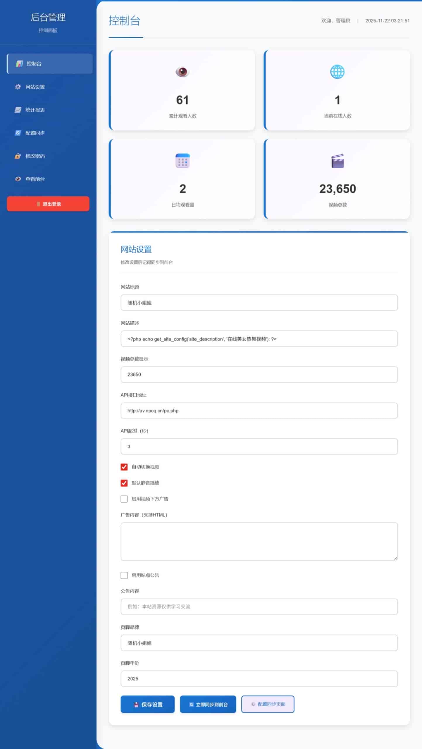 1.更新了后台功能,可以自行修改接口