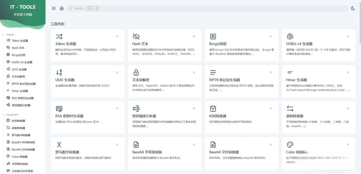IT Tools是一个免费且超全开发人员在线工具集合,对于开发人员和 IT 工作人员来说非常有用的工具,