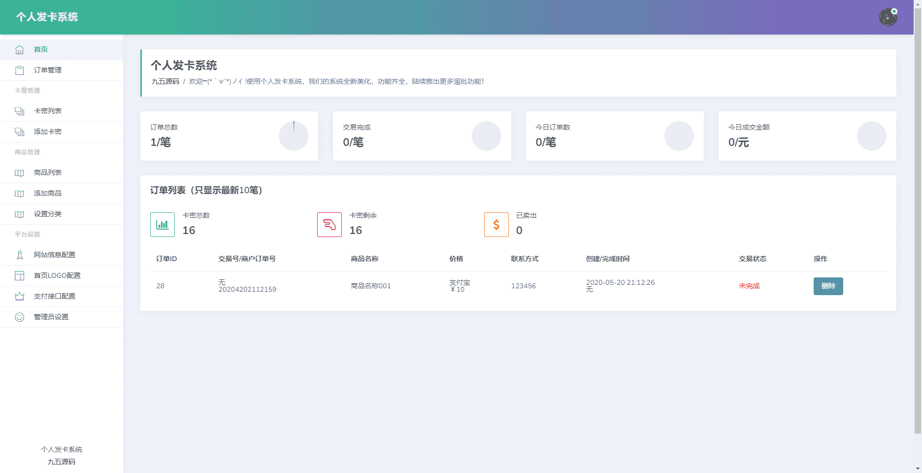 [支付理财] 开源简约个人发卡系统源码 源码无加密功能完善 对接易支付