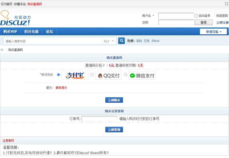 [discuz插件] dz定制版码支付改易支付版邀请码购买插件 支持自动发送邀请码功能