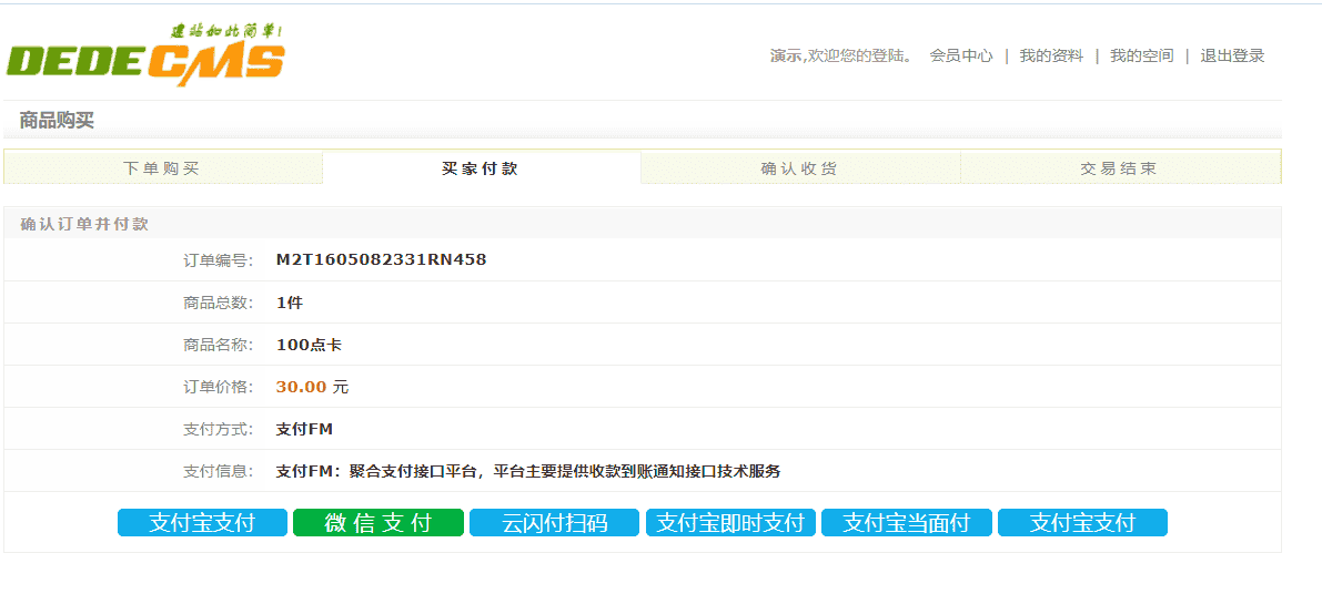 支付方式的按钮去掉或者增加路径:DedeCMS/include/payment/zhifufm.html