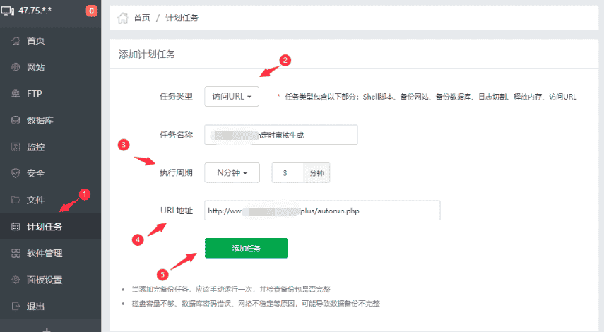 宝塔面板计划任务触发更新设置