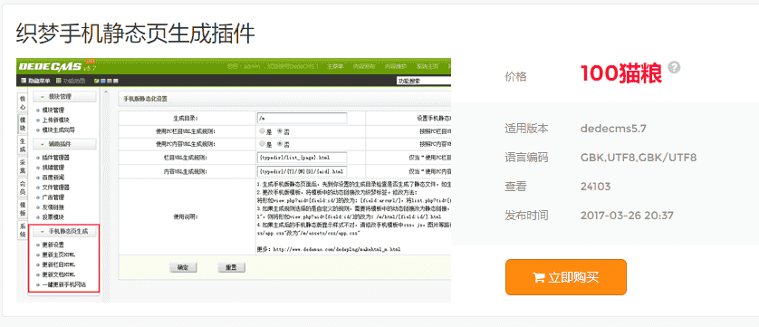 织梦手机静态页生成插件是一个安装后,可以生成手机版静态页,提高手机版网页的访问速度,更加有利于SEO。