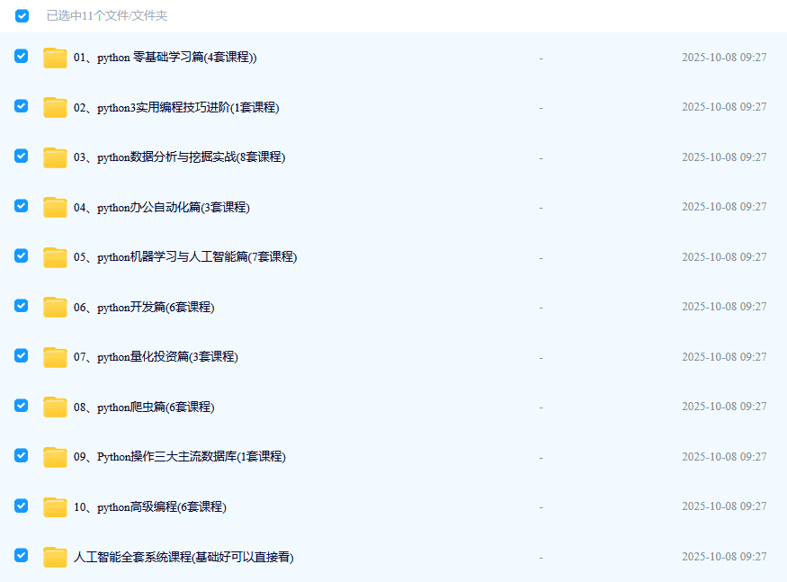 python 从入门到精通 内容比较全 成体系 共含43套课程