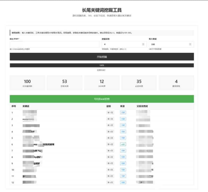 [免费源码] 免费下载单页SEO关键词长尾词优化工具网页源码