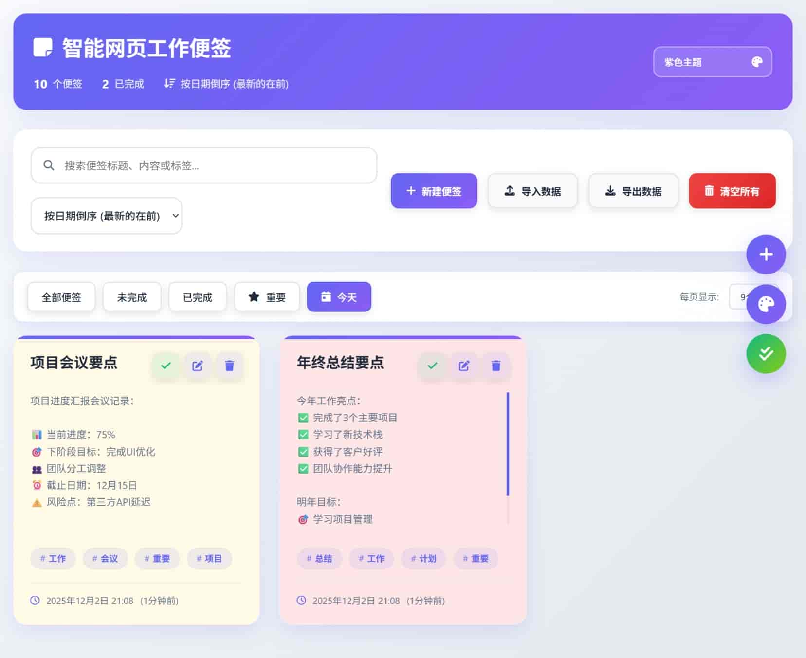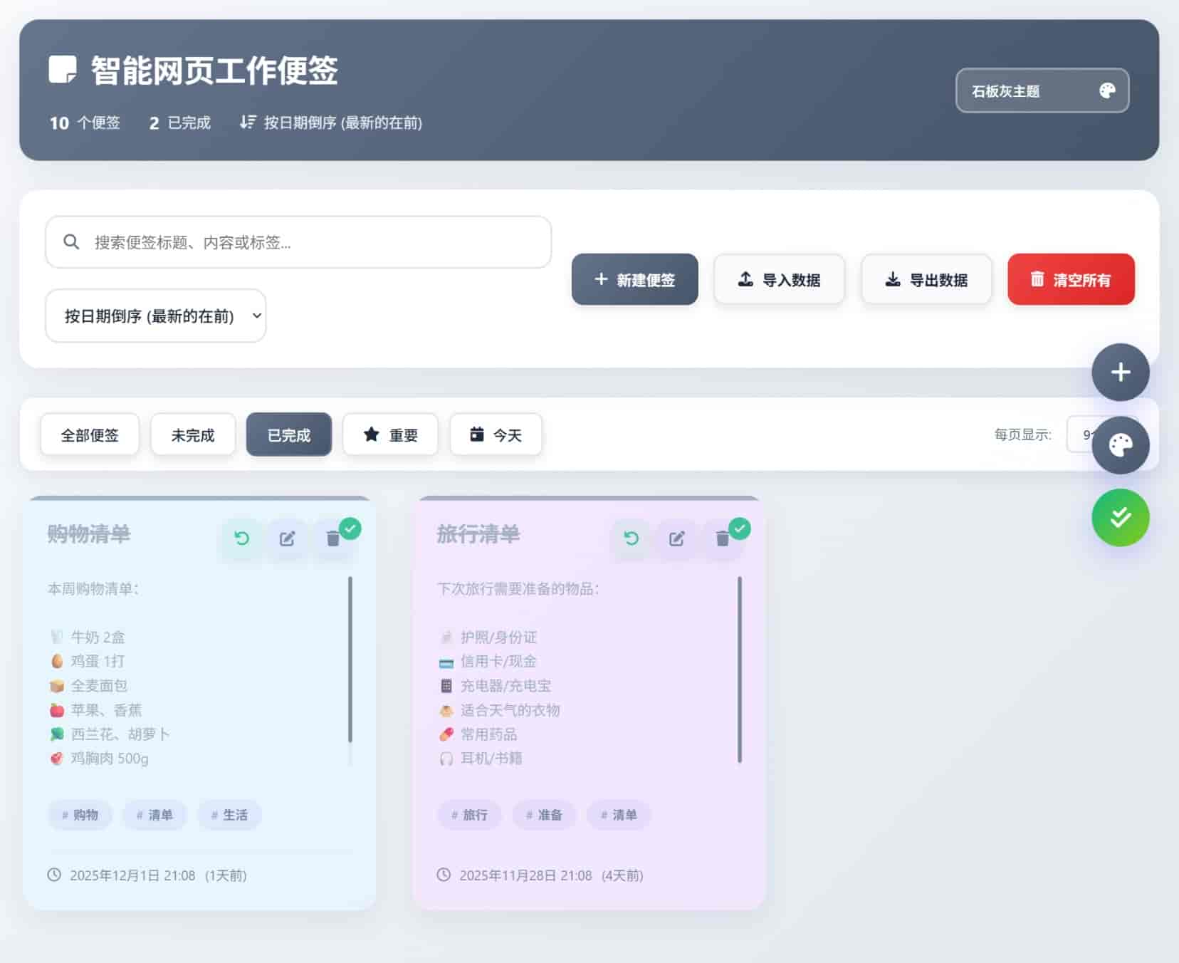 便笺显示:默认设置便签按创建日期倒序显示(最新的便签在最前面)