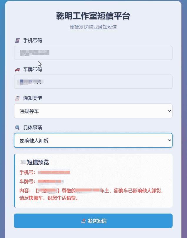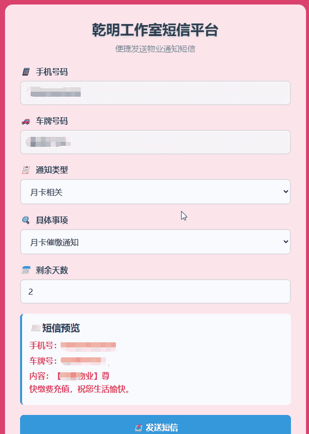 [免费源码] 免费下载单页物业管理短信发送系统 HTML源码