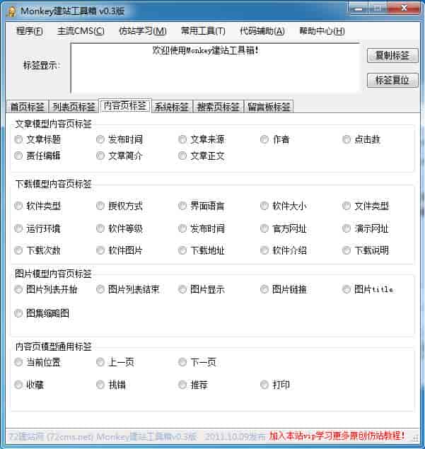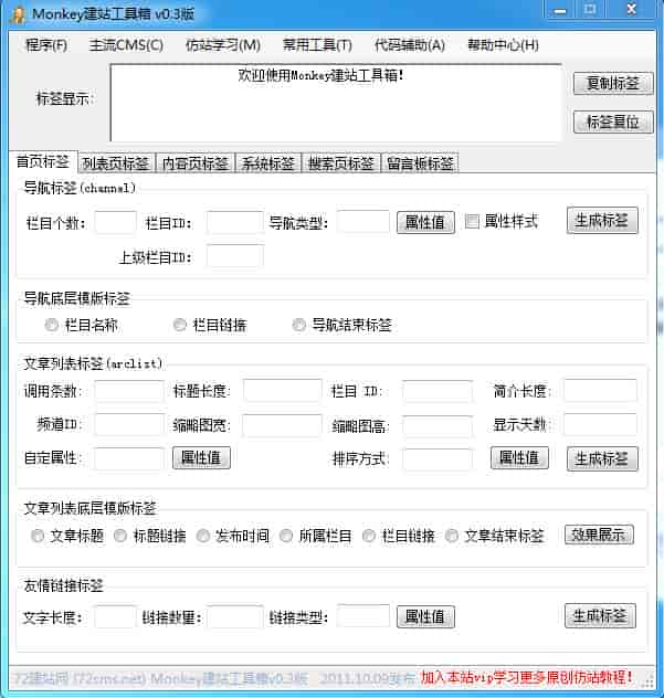 Monkey建站工具箱是dedecms v5.7的仿站辅助标签工具