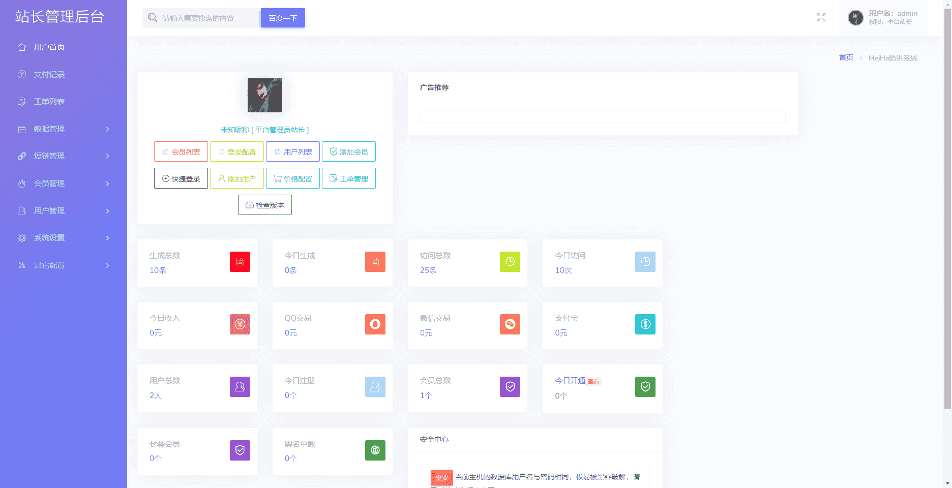一款不错的防红源码,支持直链/跳转/短链接,使用本系统红了的域名可在微信和QQ直接打开,系统带访问记录列表,可查看访问者ip和访问方式,带会员和支付功能