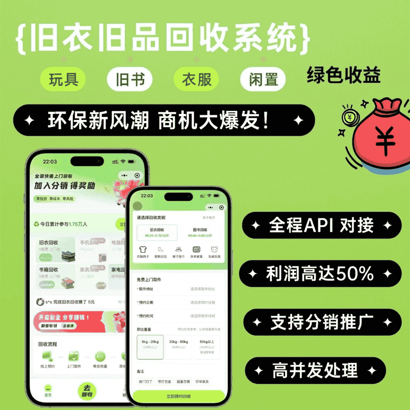 这是一款该旧物回收系统采用 GO 语言与 MySQL 5.7 技术栈构建,具备高稳定性与低维护成本。系统已集成第三方回收渠道对接功能,用户端小程序支持预约、定价等核心模块,无需二次开发即可快速部署。适合旧物回收创业或业务扩展场景,兼顾实用性与易用性。