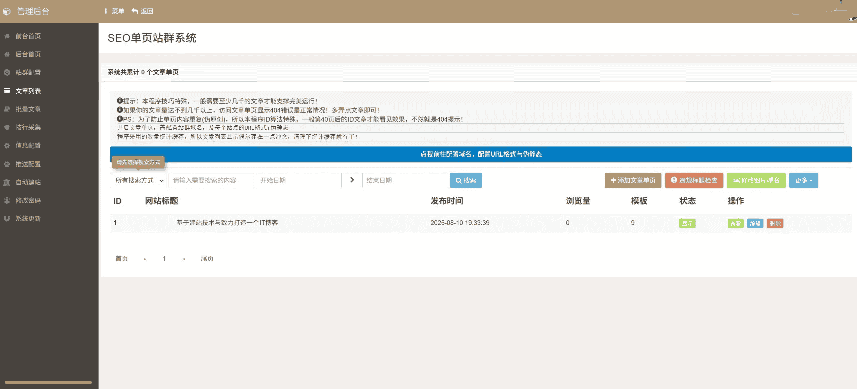 SEO站群单页系统免授权版 – 单页站群排名程序