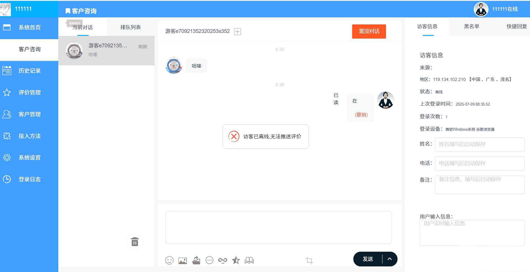 但是推送评价不了 一直显示客户离线 但是我前台一直挂着也显示离线 有能力大牛来修复一下吧[滑稽][滑稽]