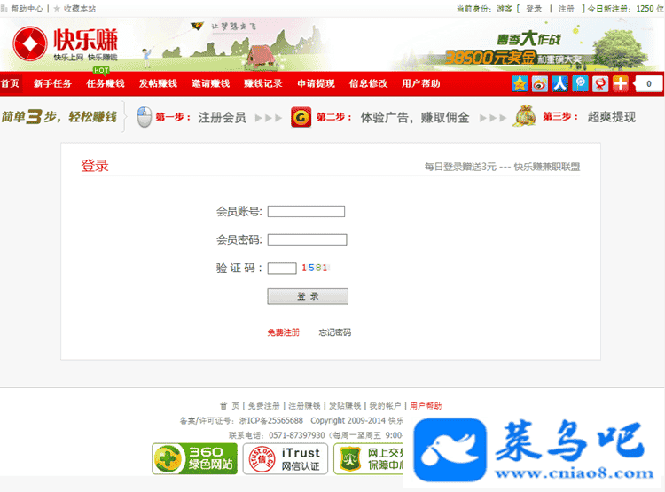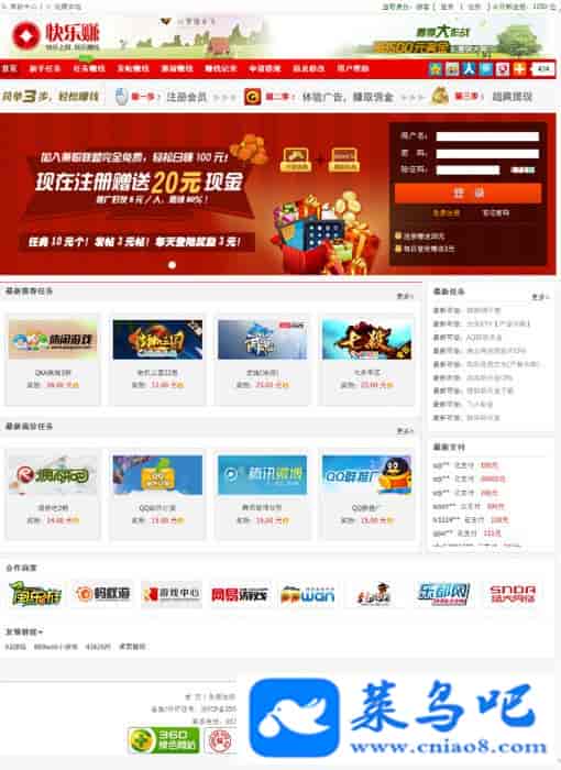 此源码为站长从淘宝购买所得,其修正了多处BUG,和增加了一些功能,完美支持更多的浏览器。首页页面精美大气,此程序做CPA广告绝对是高转化率,源码的美化看上去就是一个很正规的网站,前台后台完美的兼容所有浏览器,使用此程序做CPA必定赚钱!