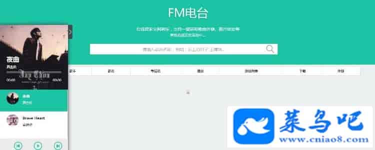 仿云上的日子 FM 电台 Net 完整 H5 源码。大气的 FM 电台商业版源码下载,前端使用 html5,后台使用 C#,支持搜索音乐+在线试听、下载和外链获取等功能。开发环境为 Visual Studio 2013,无数据库,使用.net 4.0 开发。