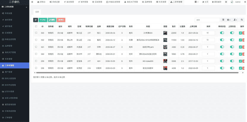 后台上传二手摩托车详细信息