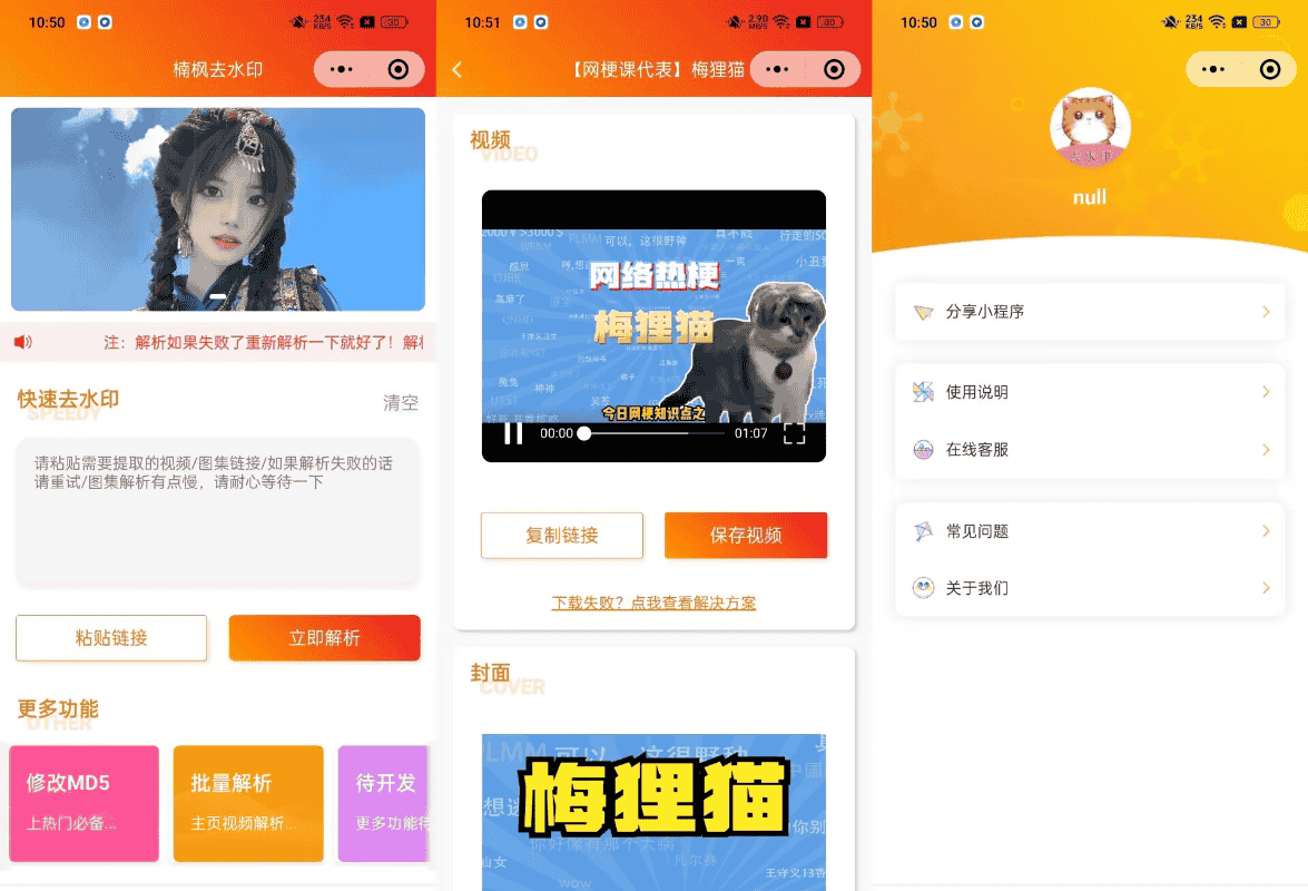 [微信源码] 去水印小程序源码修复版-前端后端内置接口+第三方接口