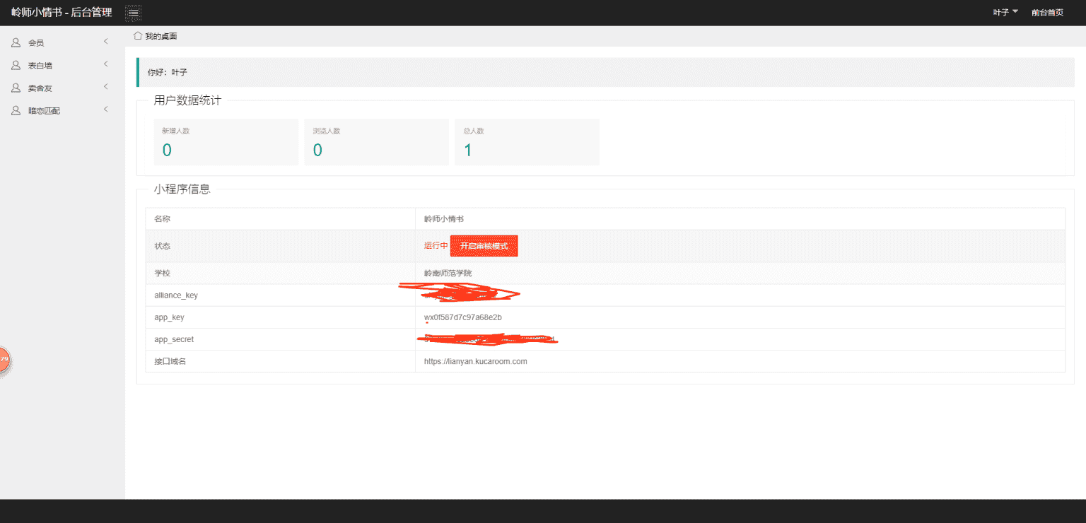 源码描述这是一款校园小情书小程序,你可以使用叶子的后台服务,也可以自己搭建后台服务,该小程序部署上线是需要微信认证小程序的,需要选择微信小程序类目为社交-论坛类目。小程序功能:表白墙、卖舍友、步数旅行、步数排行榜、情侣脸、漫画脸、个人主页、私信、站内消息、今日话题、评论点赞、收藏等等。测试环境:PHP7.0+MySQL5.7