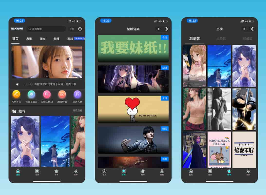 WordPress微信壁纸小程序壁纸小程序,可流量主收益,提供高清壁纸下载服务。