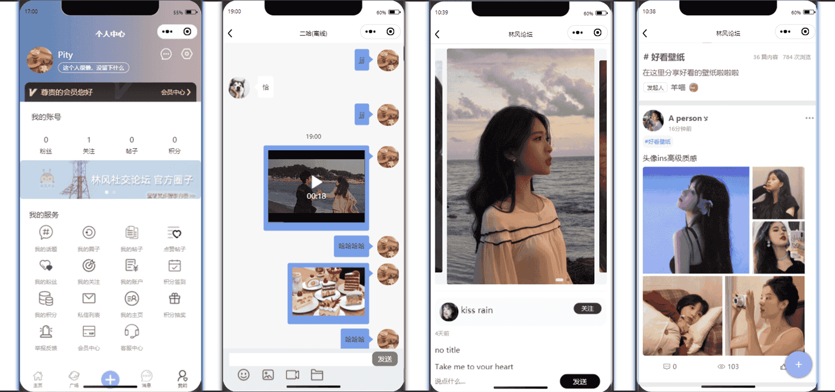 包括论坛图文帖,视频,圈子,IM私聊,微信支付,付费贴,积分签到,钱包充值等论坛小程序论坛app完整功能。