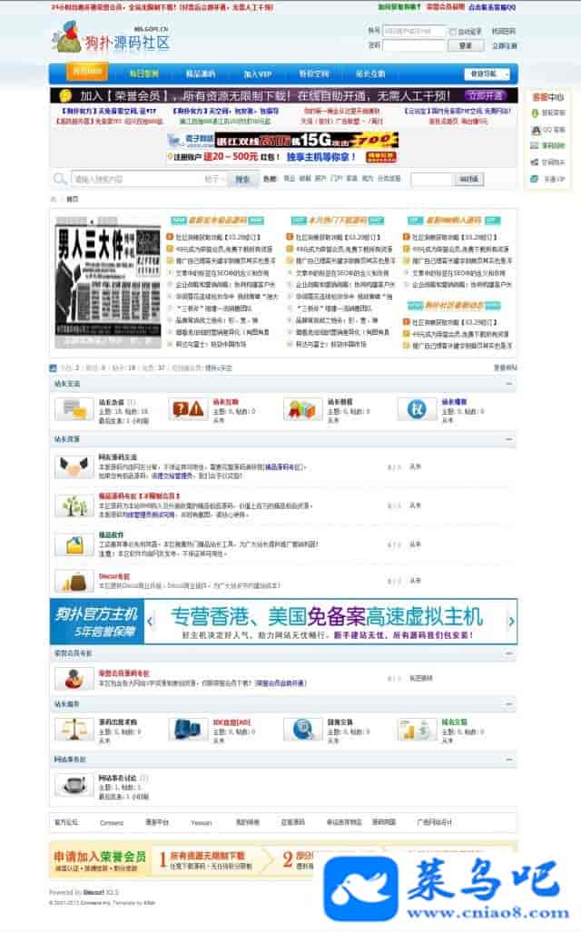 源码性质:完整无误源码介绍:相信很多人都知道狗扑源码社区,也有很多的用户找我仿制狗扑源码社区样式,这个就是帮客户仿制的,帮客户仿制时收费是250元,现在拿出来分享给大家 仅30元就可拥有哦,如果亲是做资源类的论坛,或者想做源码论坛的,当然此源码是相当的适合,论坛使用discuzX2.5为核心制作而成的,可升级到最新版。程序里面带开通VIP会员的接口,跟狗扑的是一样的,有了此接口亲们就不用在另外的花钱购买支付接口了程序亲测截图