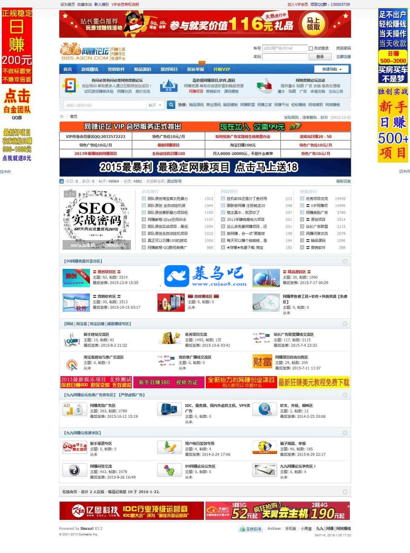 本程序整站带数据,跟演示站一样,全站已经做好了SEO,安装好即可使用不需要在配置其它,为您建站节省了N多时间,如果您是做网赚论坛的 当然此程序必定适合您,全站都设置好了,拿回去即可使用。源码包里面有安装教程,安装说明详细简单 新手也完全可以胜任,感谢西瓜分享的源码程序。