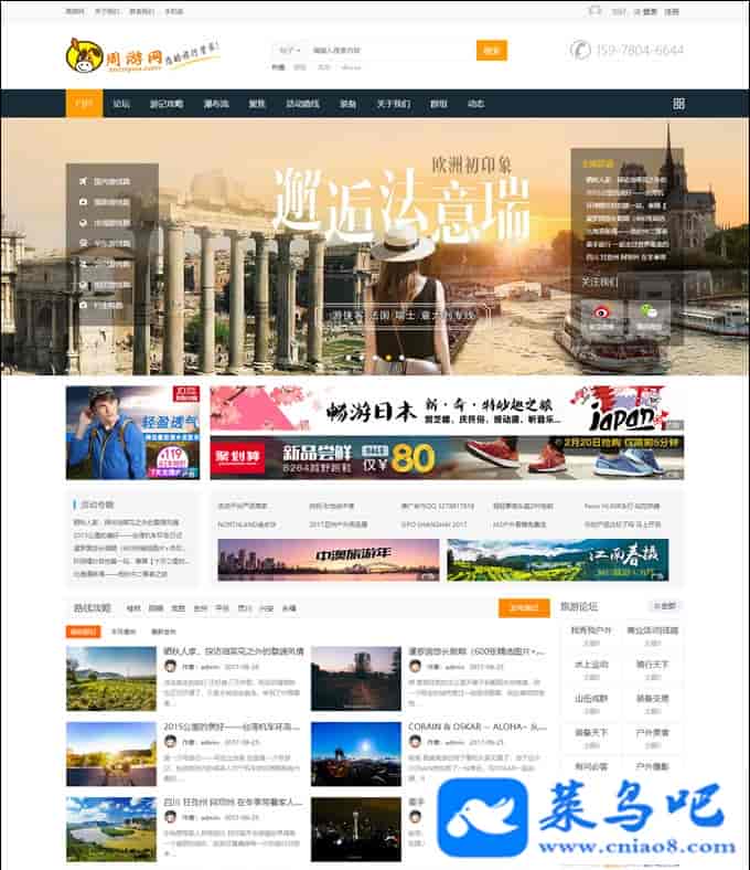 [论坛门户] 大型户外旅游门户去玩吧网站源码,Discuz内核安全可靠,比较不错的互动旅游网站源码