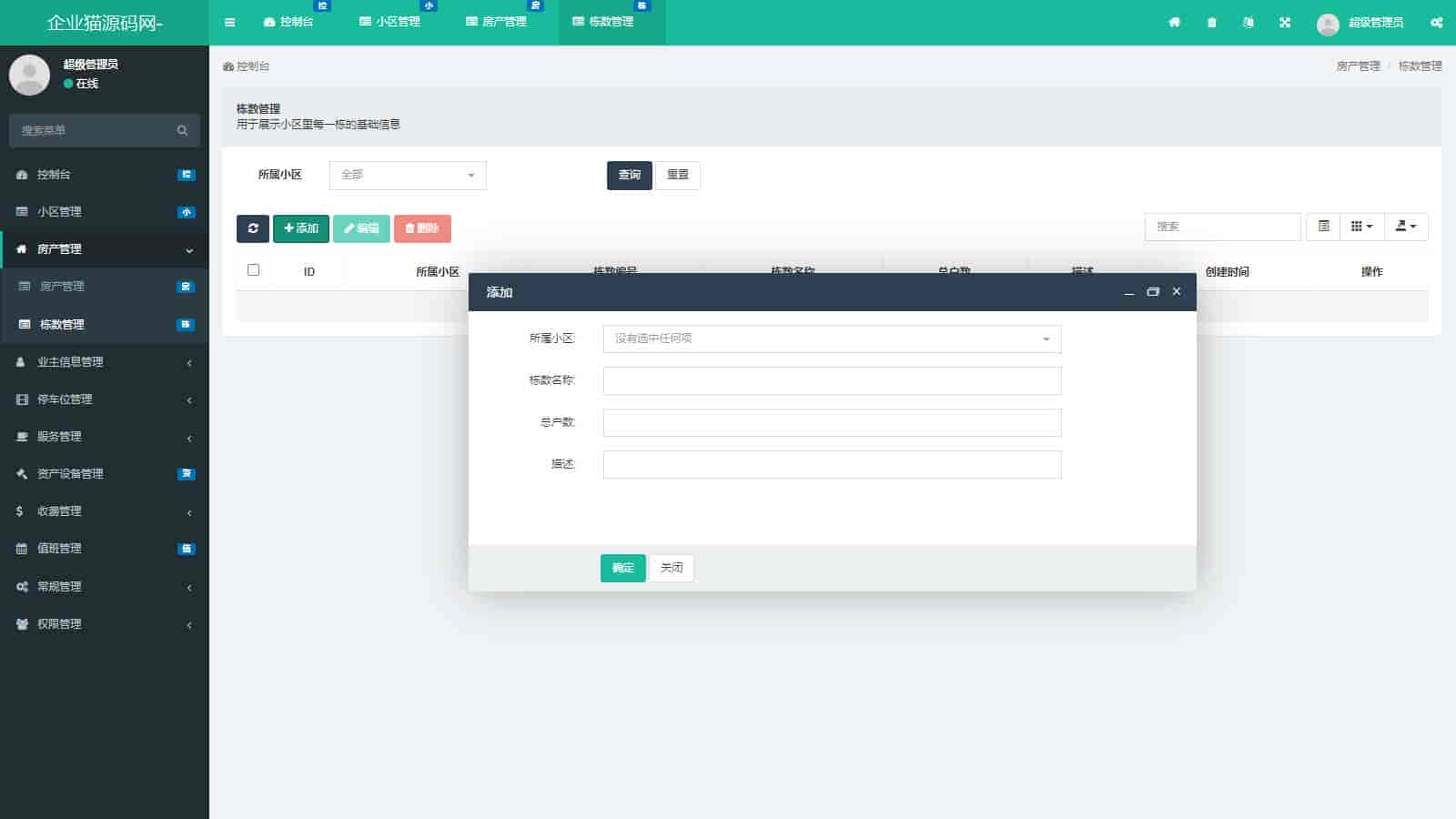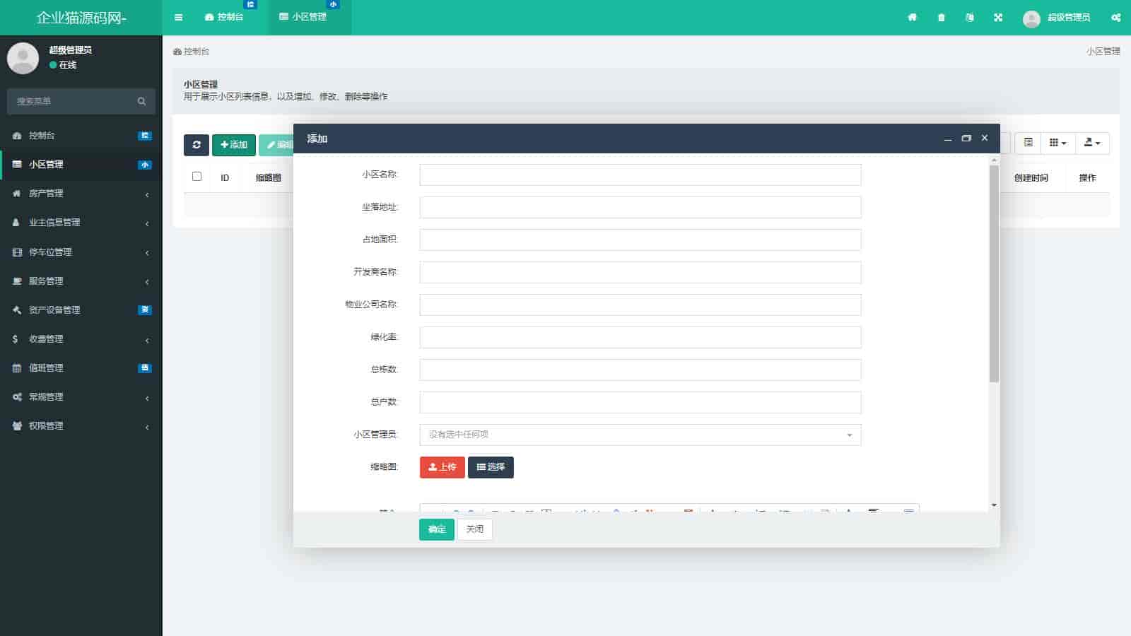 资产设备管理:对小区内的资产设备进行登记、维护和管理,确保设备正常运行。