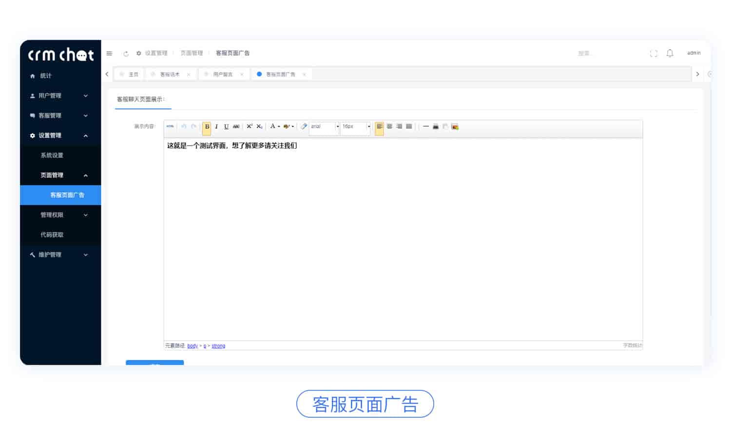源码描述这是一套高性能的客服系统,前后端分离设计,遵循最开放的木兰协议,前后端完全开源支持二次开发,基于Swoole4+Tp6+Redis+Vue+Mysql架构开发,用户端支持接入所有网上通道(联系到商家),支持Pc端、移动端、小程序、H5等多端接入,支持在文章中、超链接、网页内嵌、二维码、定制对接等方式接入,商家端支持Pc端、移动端(App),可以随时随地接收到用户的各种咨询,商家可以添加话术库、也可以对用户进行分组、加标签、加备注进行管理。不仅是商家联系客户的桥梁,也是商家的客户管理工具,目前暂不支持chatGPT。后台访问地址:http://域名/admin,客服后台访问地址:http://域名/kefu