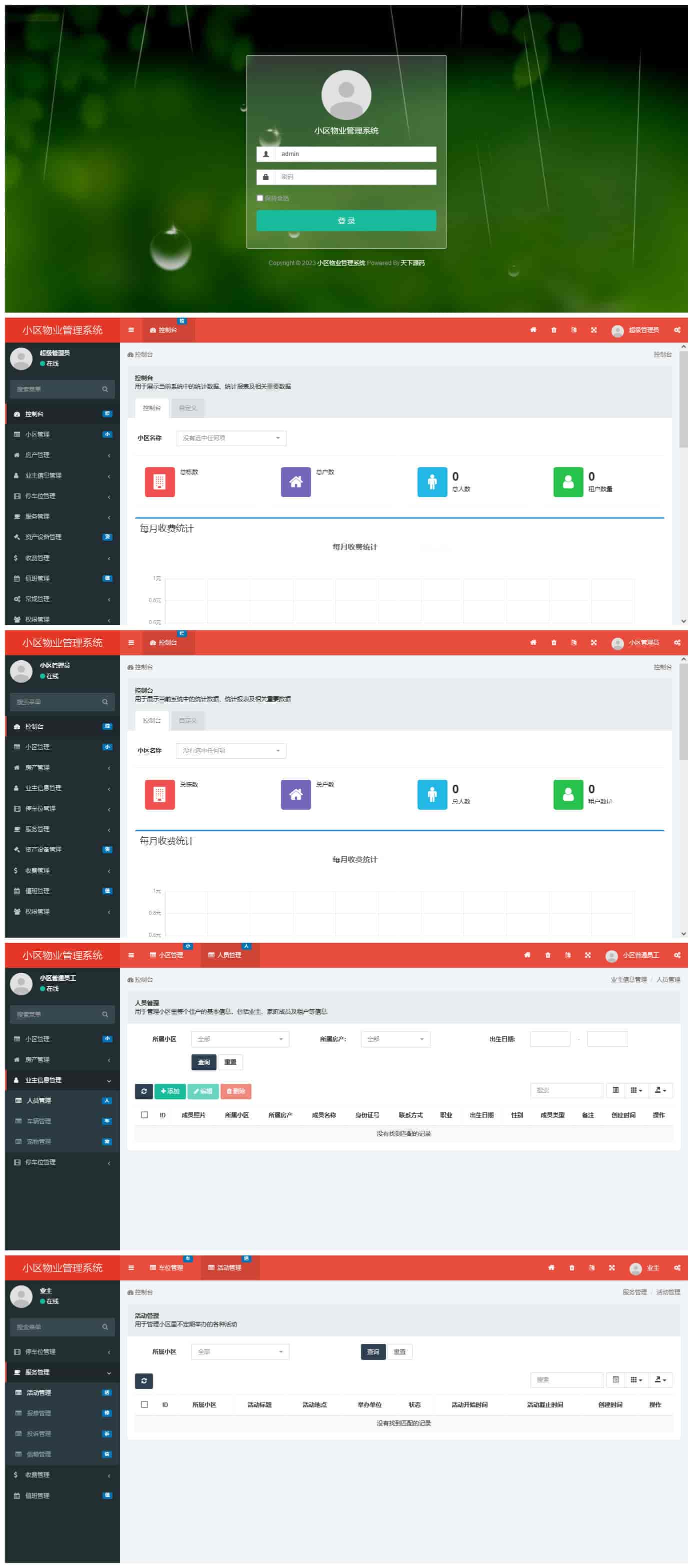 演示小区普通员工登录http://211.149.185.32:1049/public/admin.php 请在后台添加账号