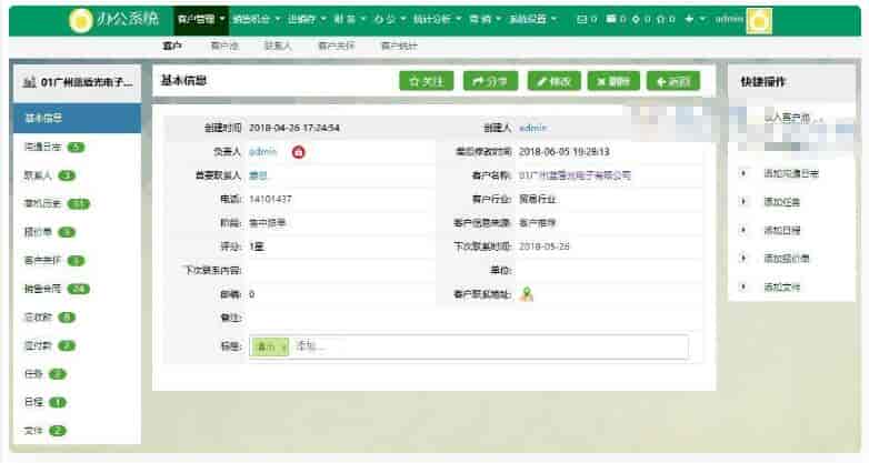 1、增加报价单(可通过商机客户基本信息,报价单快捷生成合同内容);