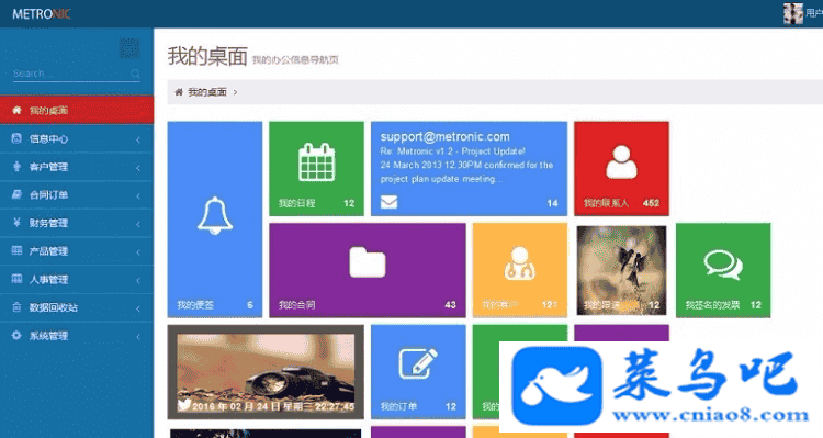 java客户关系管理系统源码CRM源码,系统包括:个人工作、信息中心、客户管理、合同订单、财务管理、产品管理、人事管理以及数据回收站等8个模块。另包括权限管理模块用于系统的用户、角色和相关权限,收发邮件功能用于获得客户的详细需求,文档管理功能用于客户信息文件的存储。