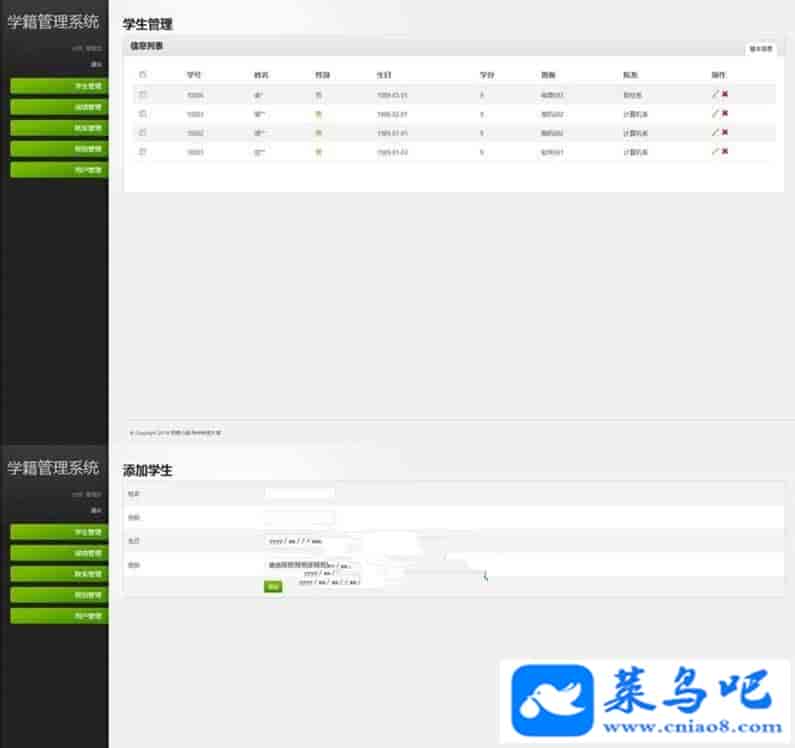 Thinkphp学籍管理系统源码,基于Thinkphp3.2框架开发的教学管理系统后台程序,毕业设计的作品,通过了指导老师的实践考核。 自带数据库文件,模板分离易维护,适合二次开发。