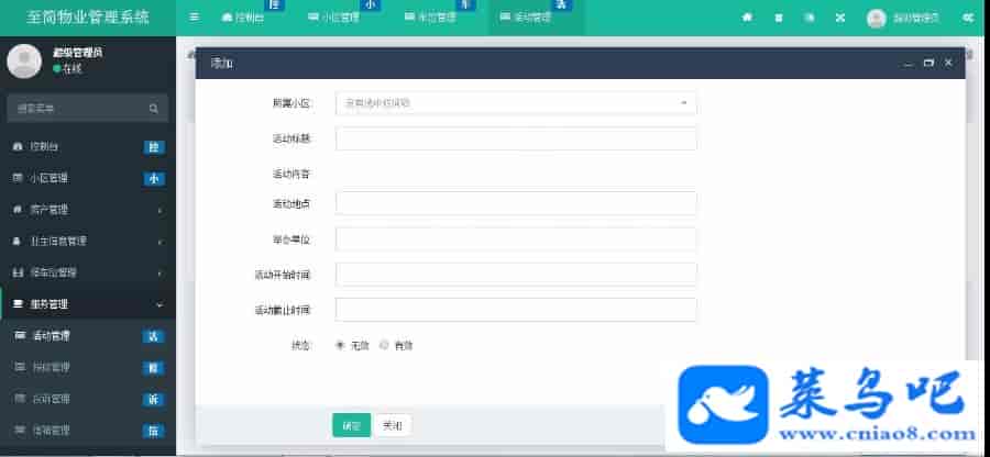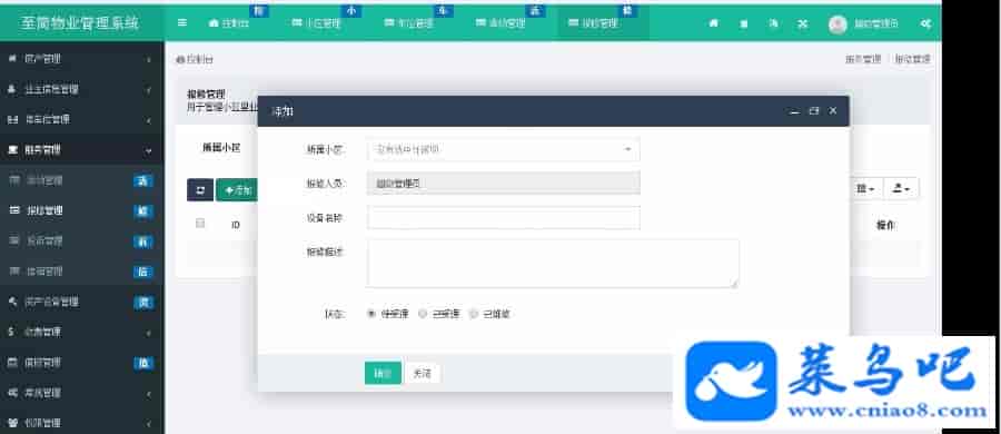 主要模块有社区活动管理、客户投诉管理、报修管理、信箱管理。