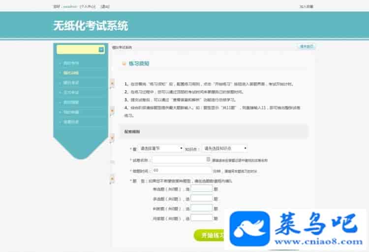 2.随机组卷练习,系统自动抽取题目进行练习 ;