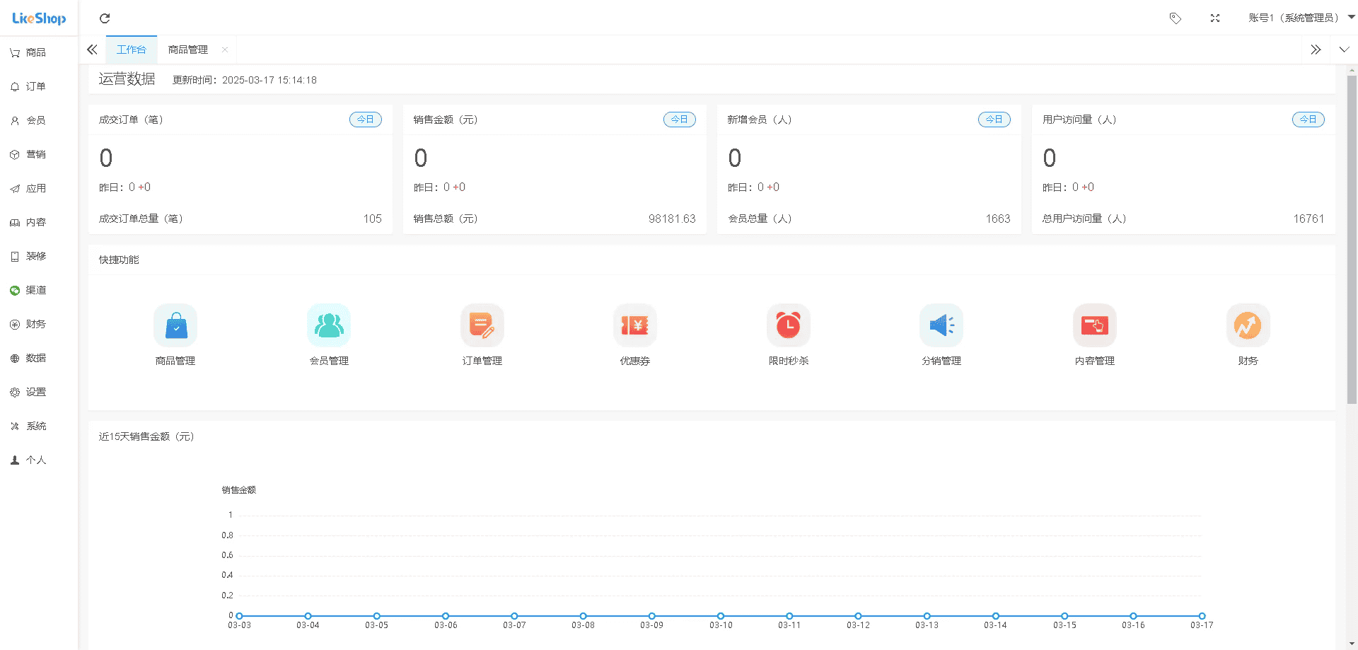 演示网址:https://php-b2c-demo.likeshop.cn/admin