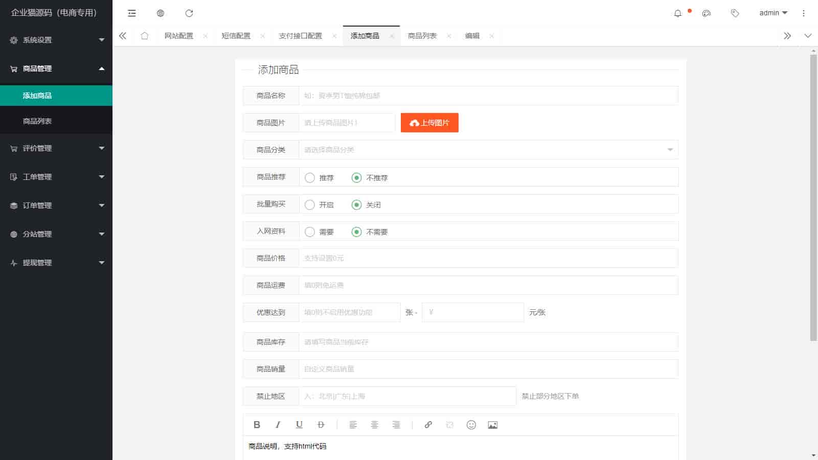 源码后台功能齐全,上传管理商品,查询订单状态!已经对接好了易支付,轻松对接各种第三方支付