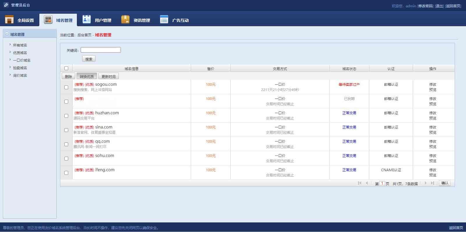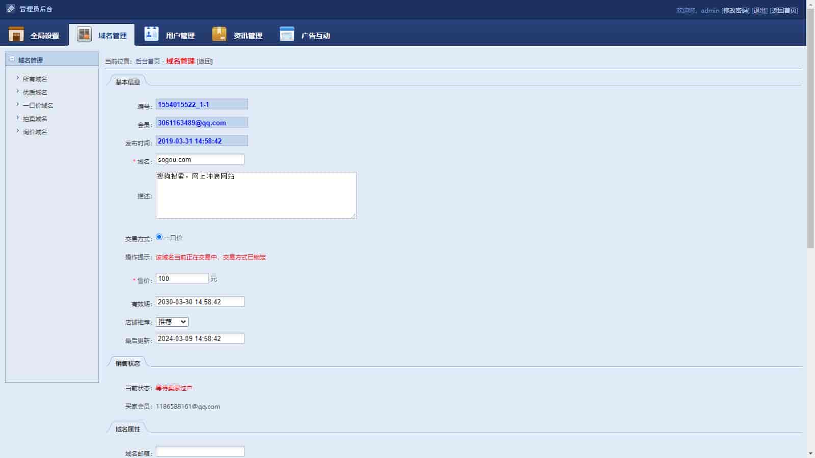 域名在线交易系统域名发布域名出售域名购买无授权带后台源码友价域名