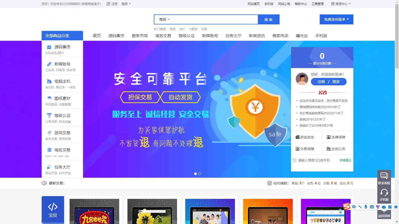 [商城团购] 电子商务平台系统在线商城高仿互站网卡密商品虚拟资源实物产品多套模板完整源码