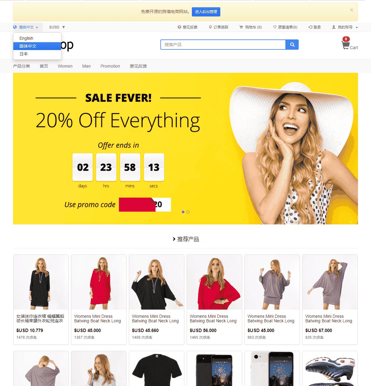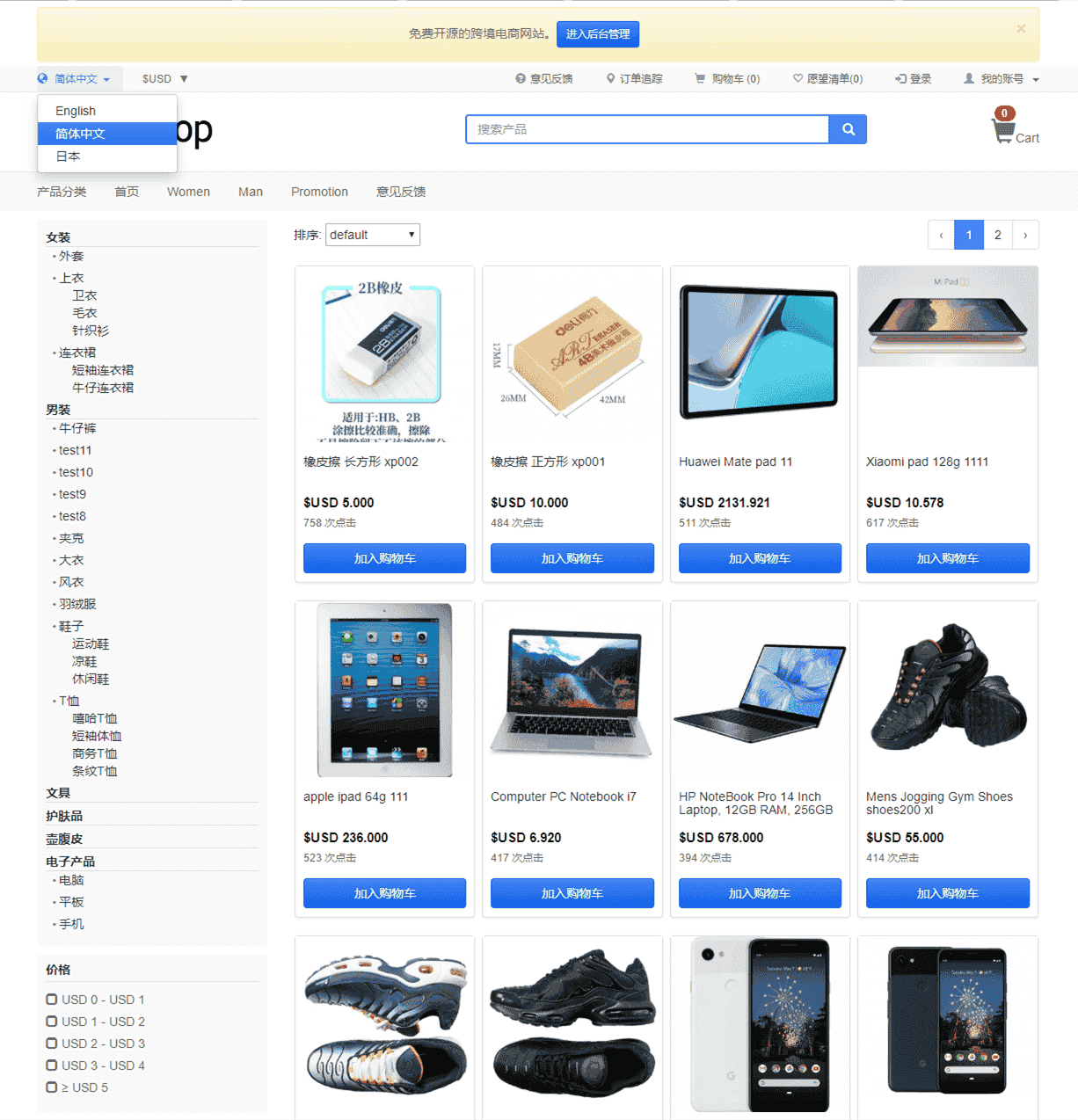 源码描述本套系统是跨境电商系统,也是一套Web商城系统,基于Laravel6框架开发,该系统没有对Laravel框架进行改写,而是充分使用了laravel的中间件、事件系统、artisan命令行、模型关联等特性,这使得系统架构有着更好的解耦性,也更易于上手和二次开发。系统界面简洁美观,支持多语言(中日英),支持多货币,支持PayPal支付,支持多种国际配送方式,而且移动端自适应。系统主要功能有:购物车,权限管理,产品管理,分类管理,会员管理,订单管理,文章管理,网站设置,等等。