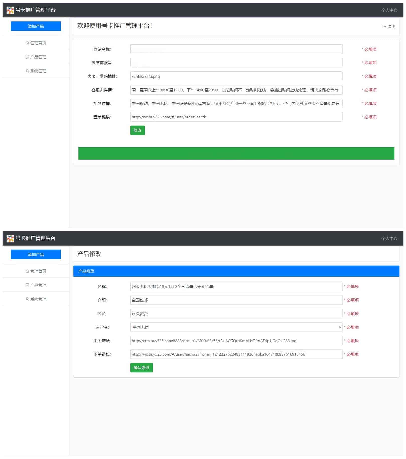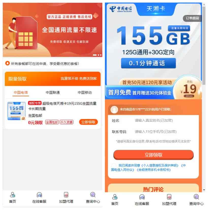 一款号卡推广系统源码,比较简洁,带弹窗公告,有在做号卡代[过滤]理的可以拿去用哈。测试了一下挺好看的。