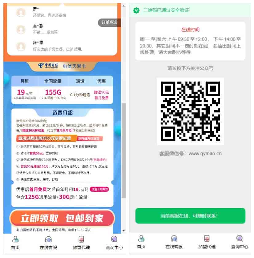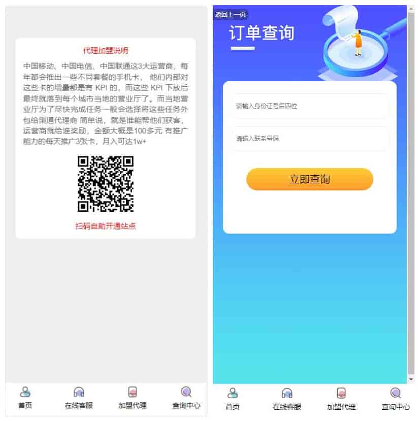 [商城团购] 手机号卡商城系统手机号卡推广平台手机号卡代理业务扫码自助开通分站WAP源码带后台