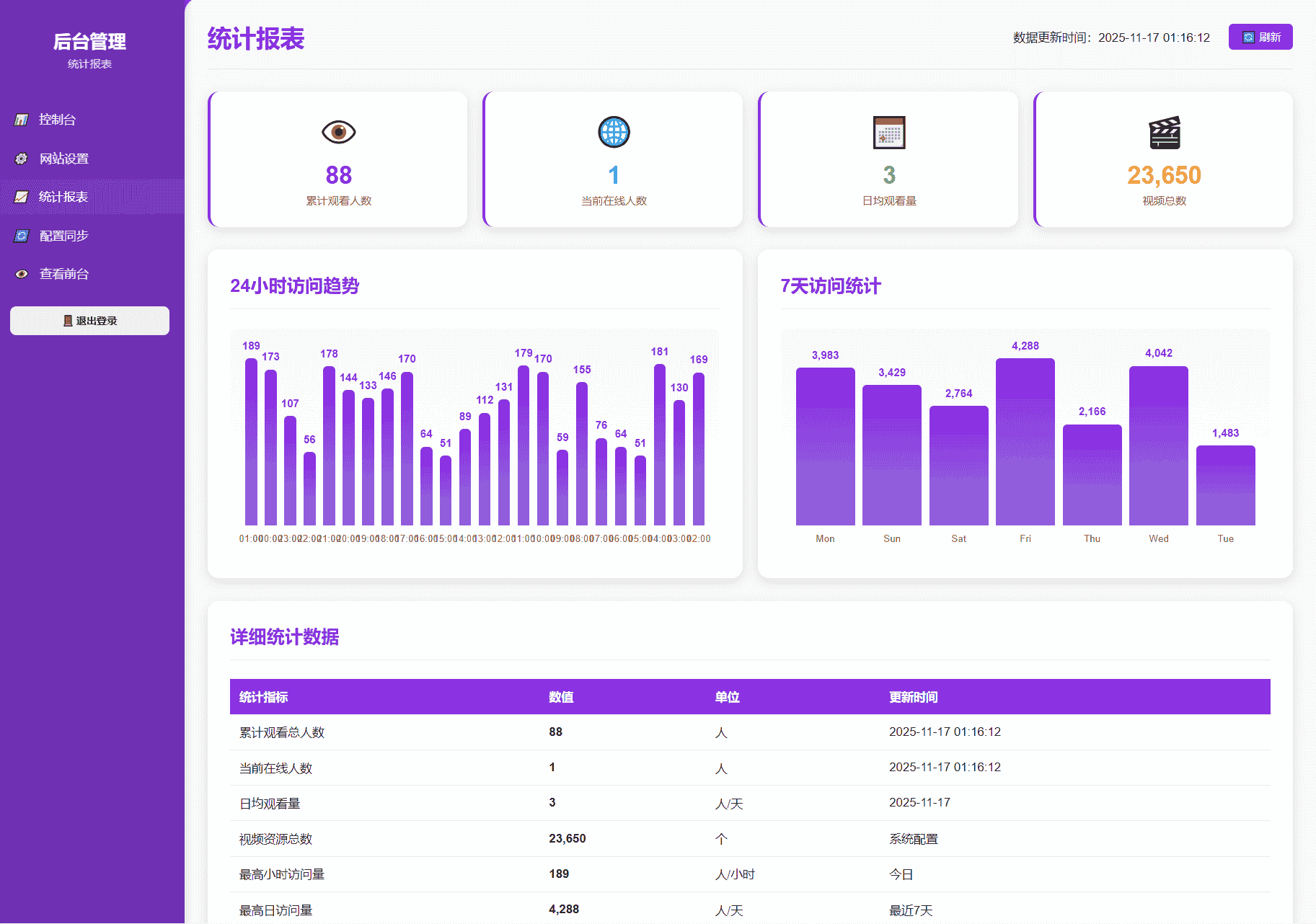 4.0版本更新了后台功能,可以自行修改接口,修改网站信息,后台统计报表等