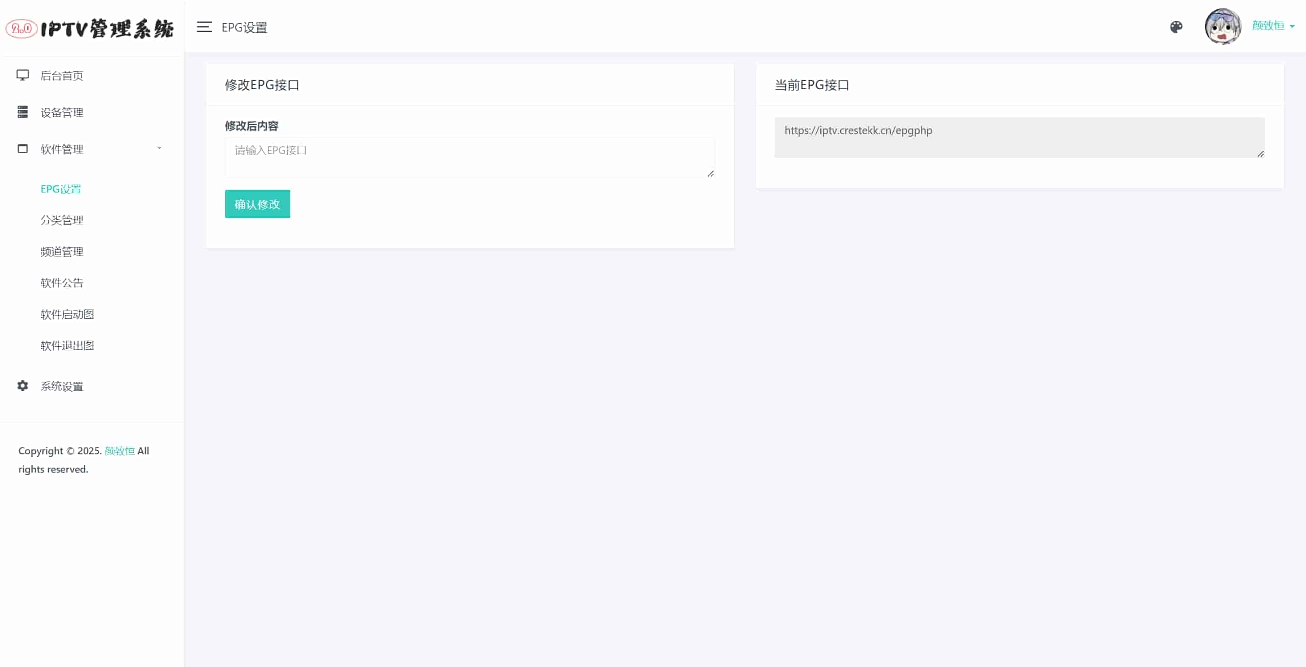 这是一个电视直播源管理系统,主要用于对接定制的DIYP影音,实现定制化的电视直播软件。
