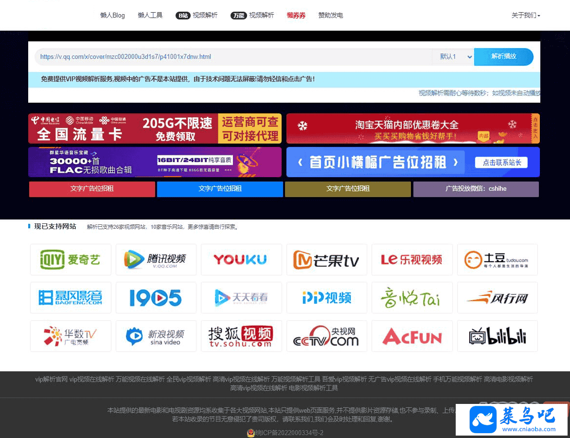 懒人影院官网VIP视频解析工具源码