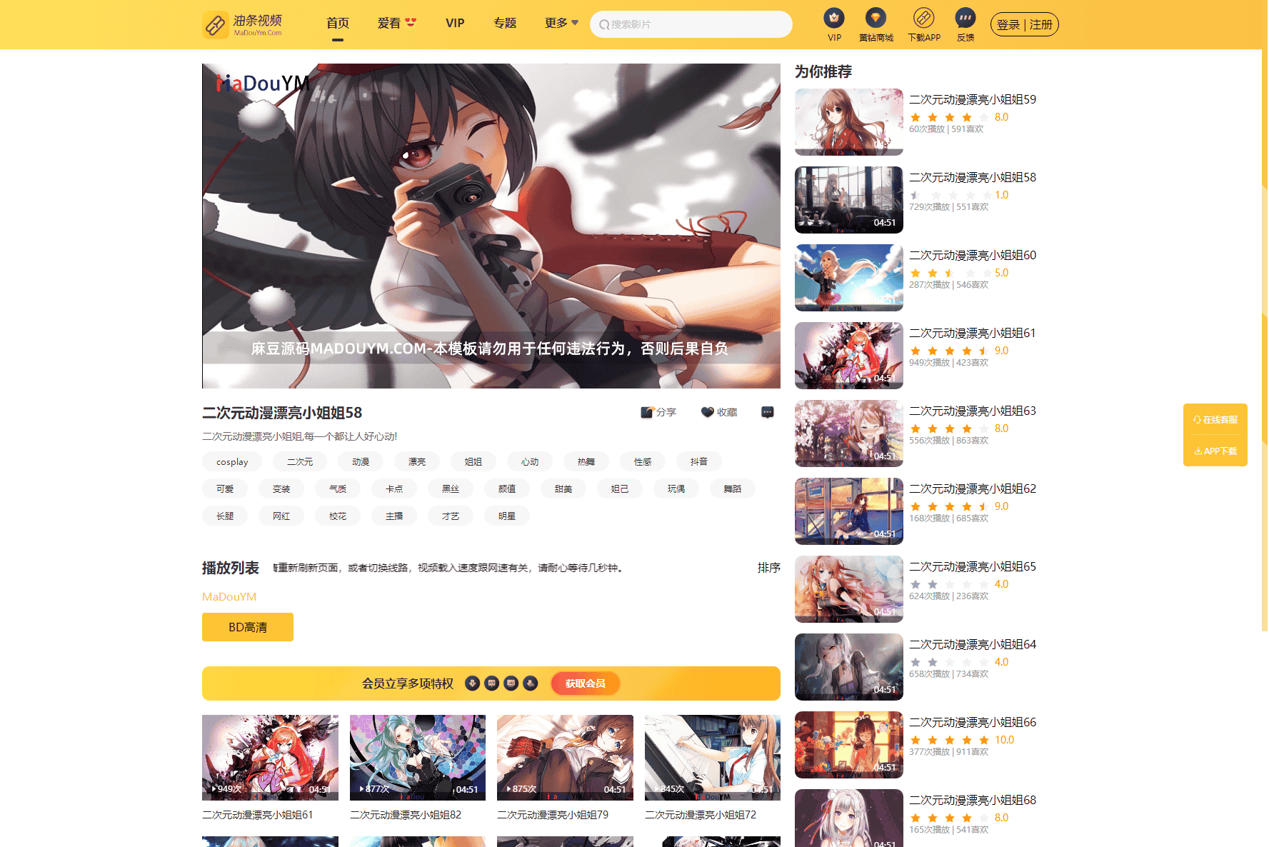 2. 视频,演员,专题,收藏,会员系统模块齐全,支持子分类,不再只显示单一的主分类
